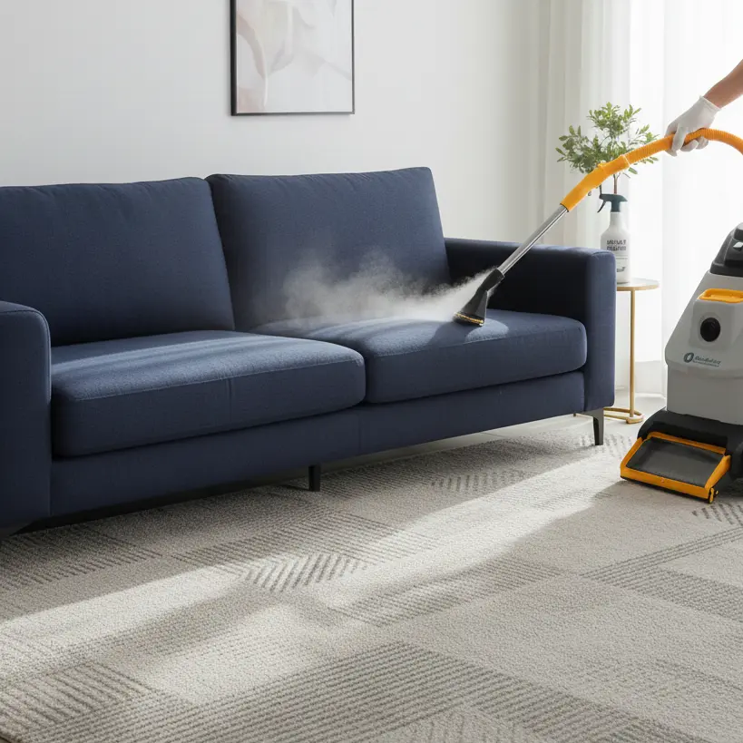 Machine steam-cleaning & sanitizing for sofas